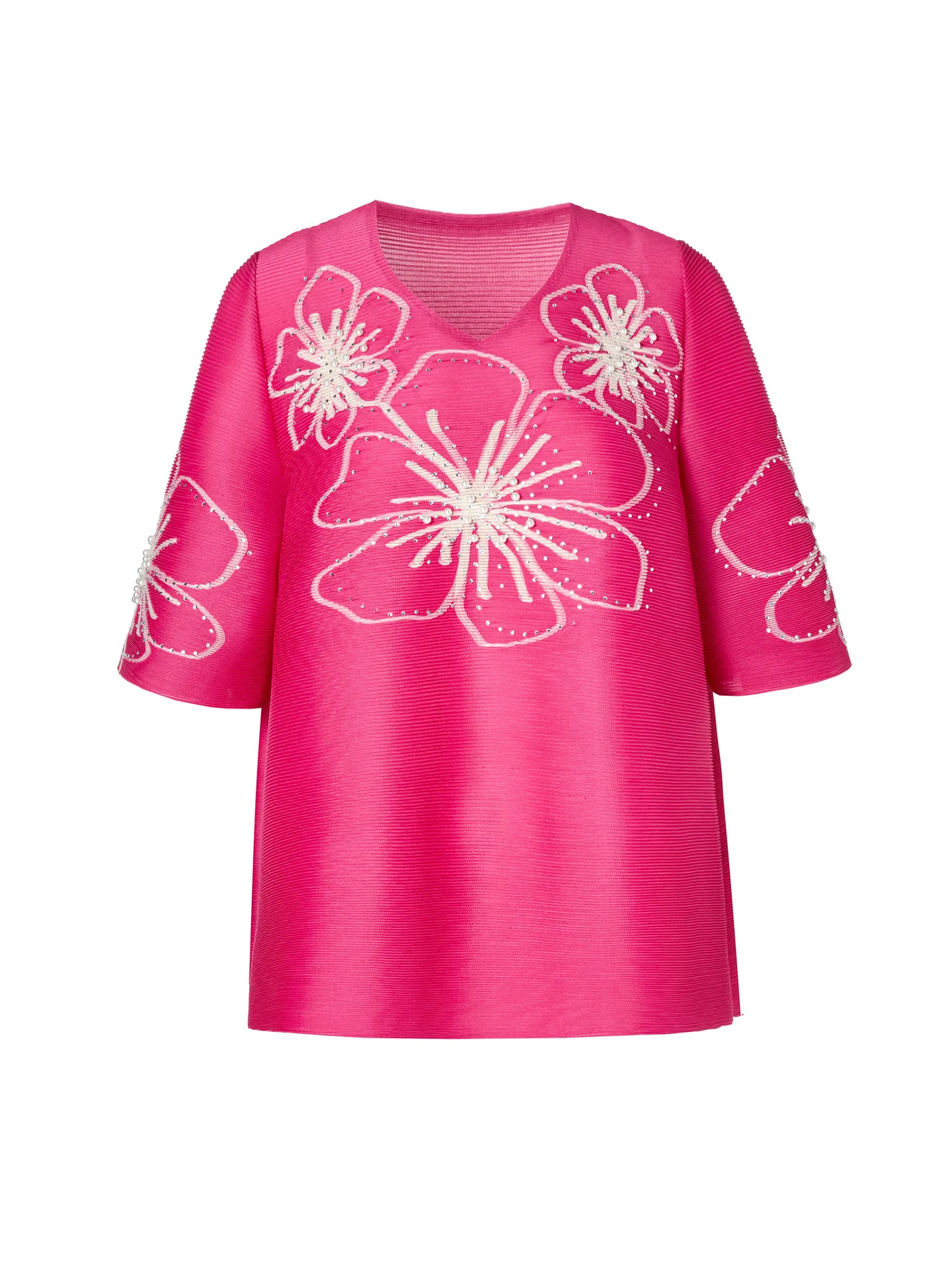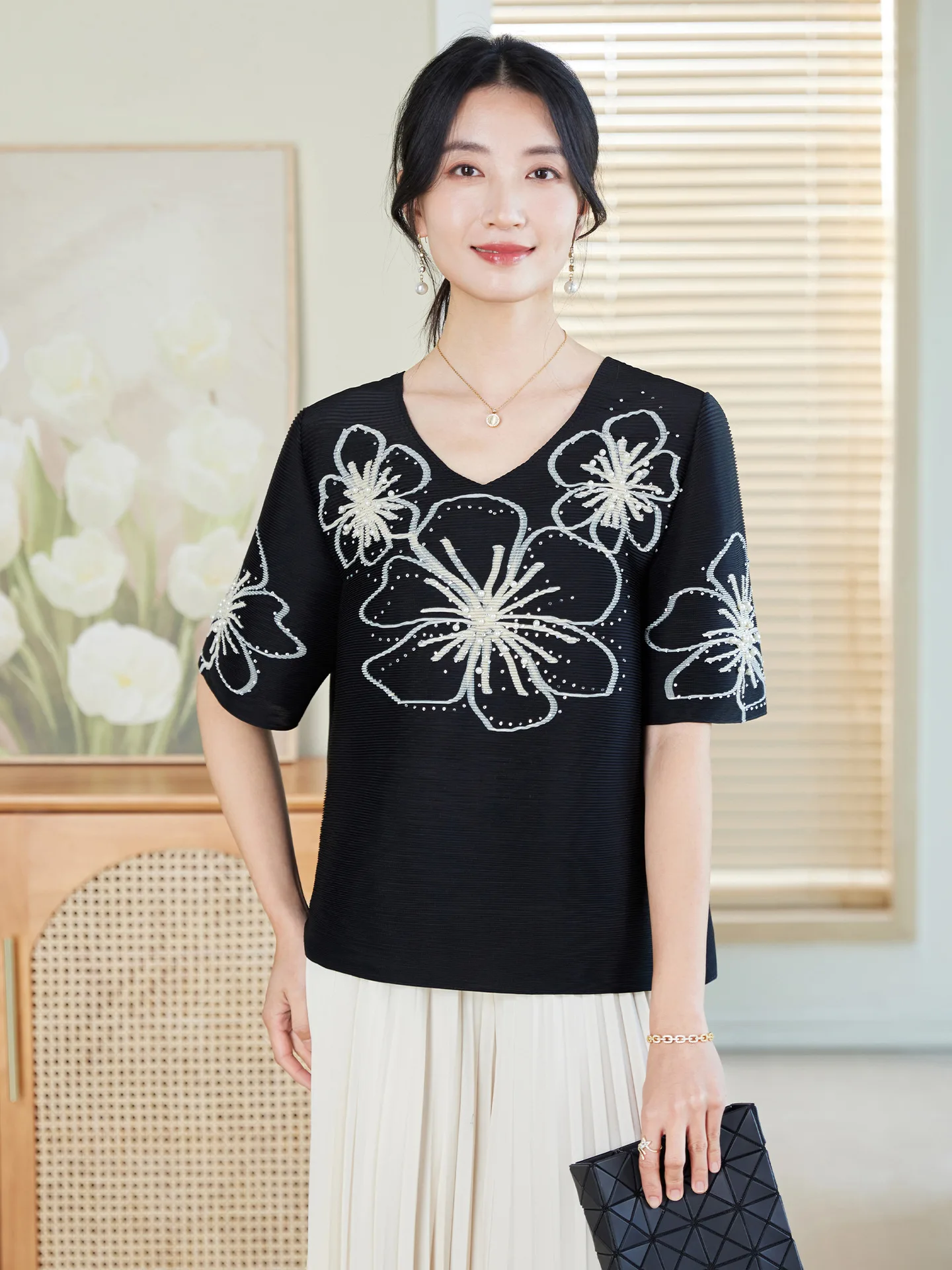 Miyake Handmade Heavy Nail Bead Embroidery Pleated Short Sleeve Loose-Fitting Casual Mother Jacket New Generation Hair 2026